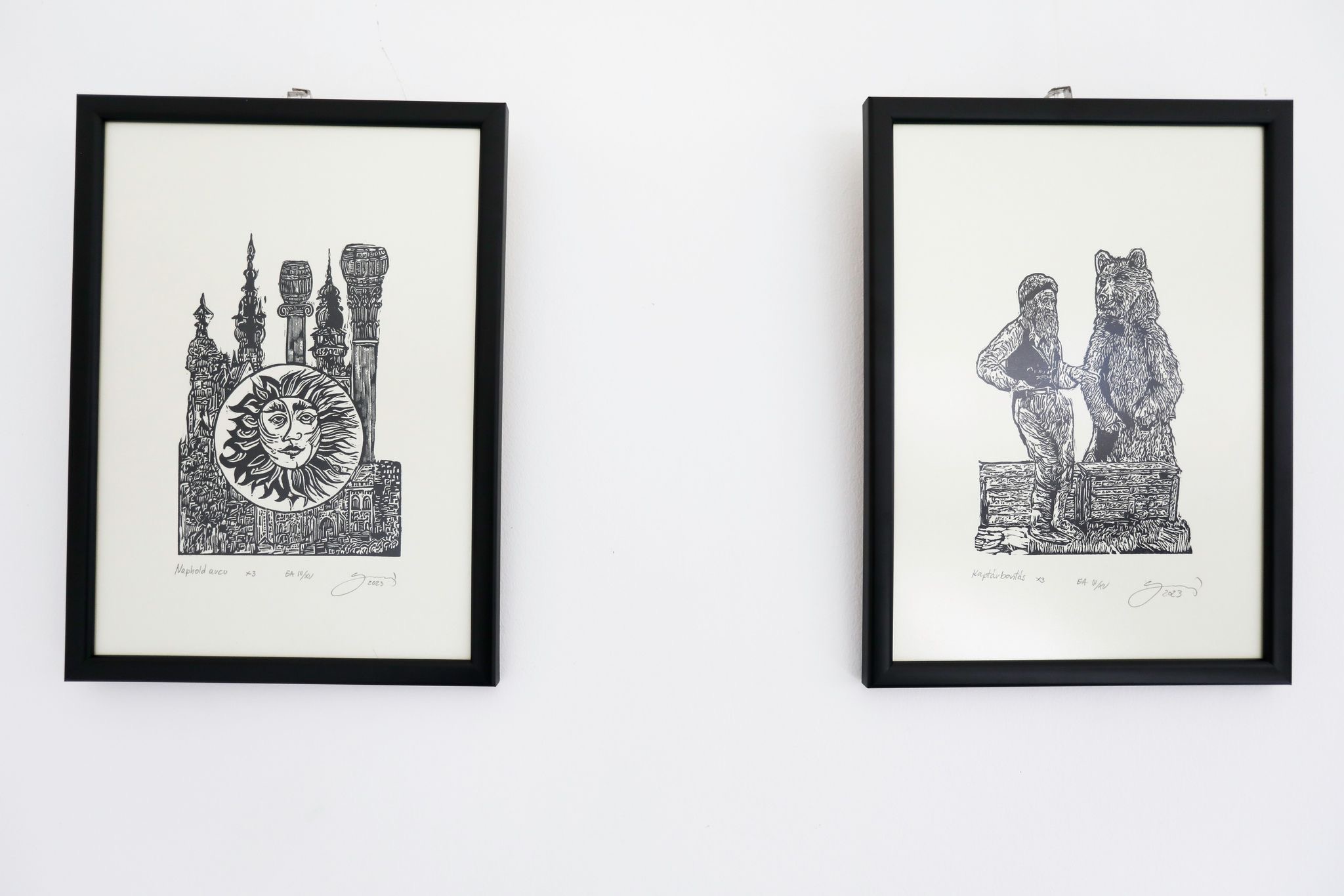 És van itt egy másik tárlat is, Szepessy Béla, a Nyíregyházi Egyetem Vizuális Kultúra Intézetének igazgatója műveinek kiállítása, amelyek lapjai Berecz András mesemondó meséinek könyv alakban megjelent illusztrációiként jelentek meg, és amelyek egy újabb sokszorosító eljárást, a linómetszés technikáját kapcsolja a sokszorosító technikákra koncentráló programhoz. Az élesen elváló fekete-fehér foltokra koncentráló művek a magyar sokszorosító grafika erős hagyományaihoz kapcsolódnak, de egyúttal balladisztikus hangvételükkel, a rajzosságot és a foltszerű komponálást egyesítő előadásmódjukkal kitűnően illeszkednek az irodalmi alapanyaghoz is.